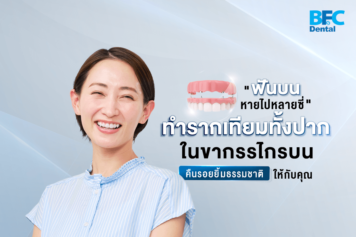 ข้อดีเหล่านี้ทำให้การทำรากเทียมทั้งปากด้วยระบบดิจิทัลเป็นทางเลือกที่น่าสนใจสำหรับผู้ที่ต้องการฟื้นฟูฟันทั้งปากอย่างรวดเร็วและมีประสิทธิภาพ หากคุณมีปัญหาสูญเสียฟันบนหลายซี่ และต้องการทำรากเทียมทั้งปากในขากรรไกรบน ควรเข้ารับการตรวจประเมินจากทันตแพทย์ ที่ BFC Dental เพื่อวิเคราะห์สภาพกระดูกและสุขภาพช่องปากโดยรวมเพื่อให้ทันตแพทย์วางแผนการรักษาที่เหมาะสมที่สุดสำหรับคุณ เพื่อให้คุณกลับมามีรอยยิ้มที่สดใสและใช้ชีวิตได้อย่างมั่นใจอีกครั้ง เพราะรอยยิ้มที่มั่นใจและคุณภาพชีวิตที่ดีนั้นไม่ใช่เรื่องไกลเกินเอื้อมสำหรับคุณอีกต่อไป